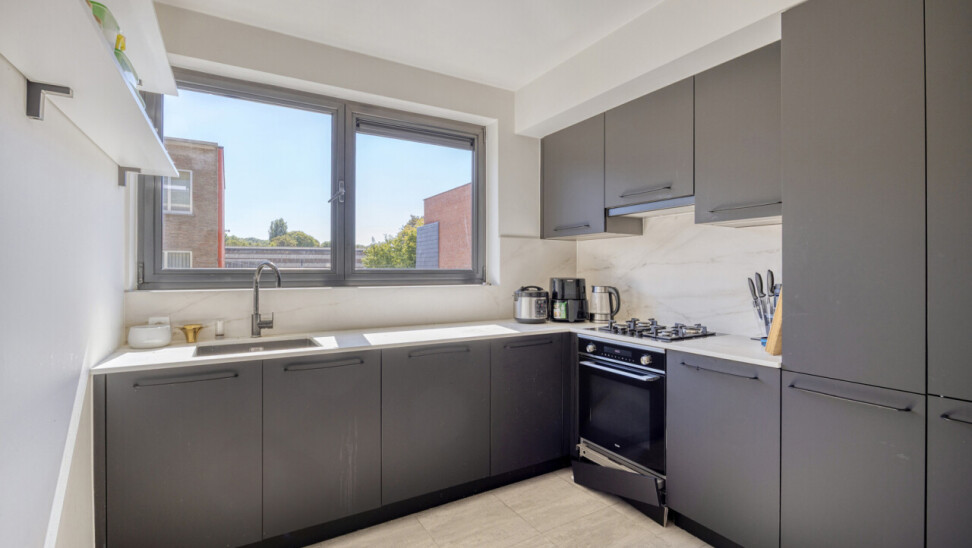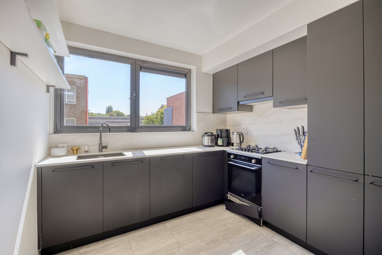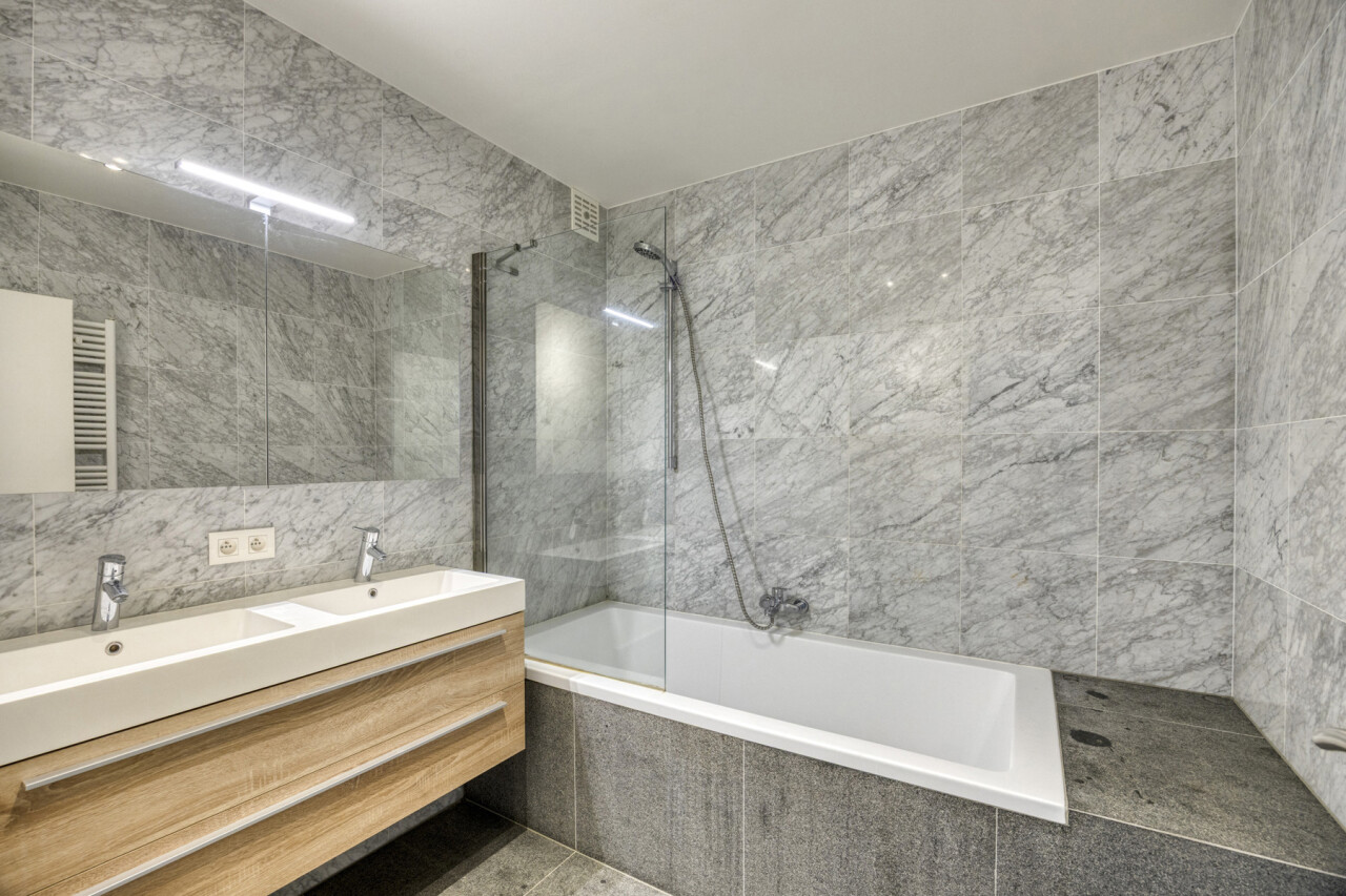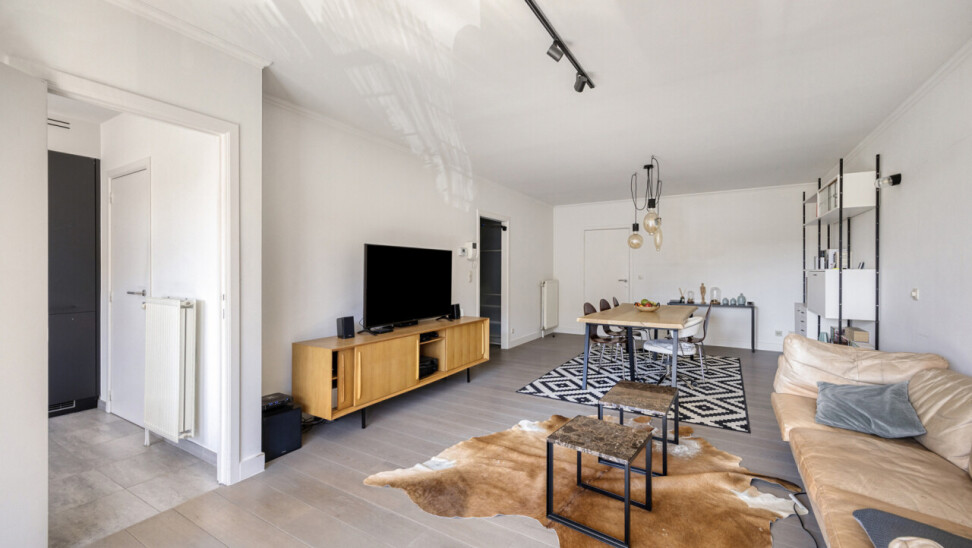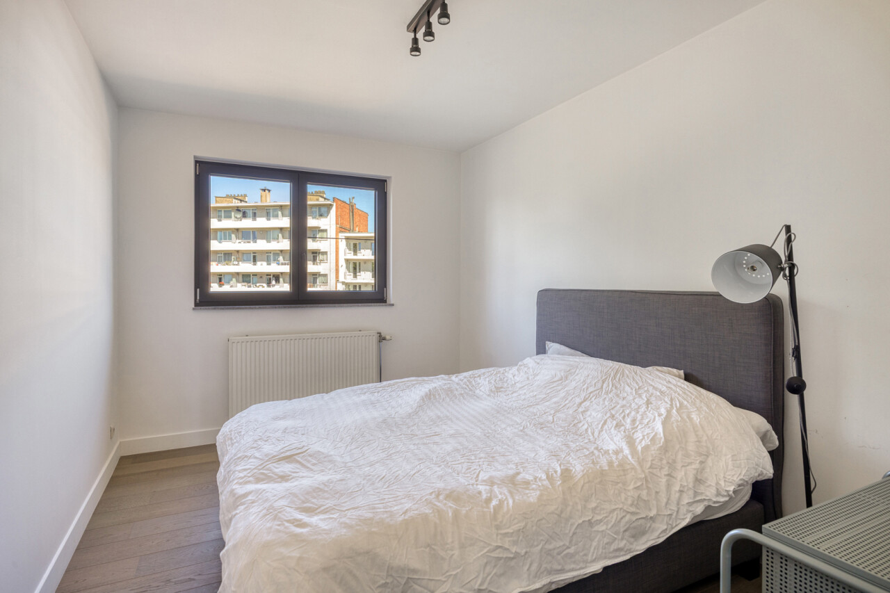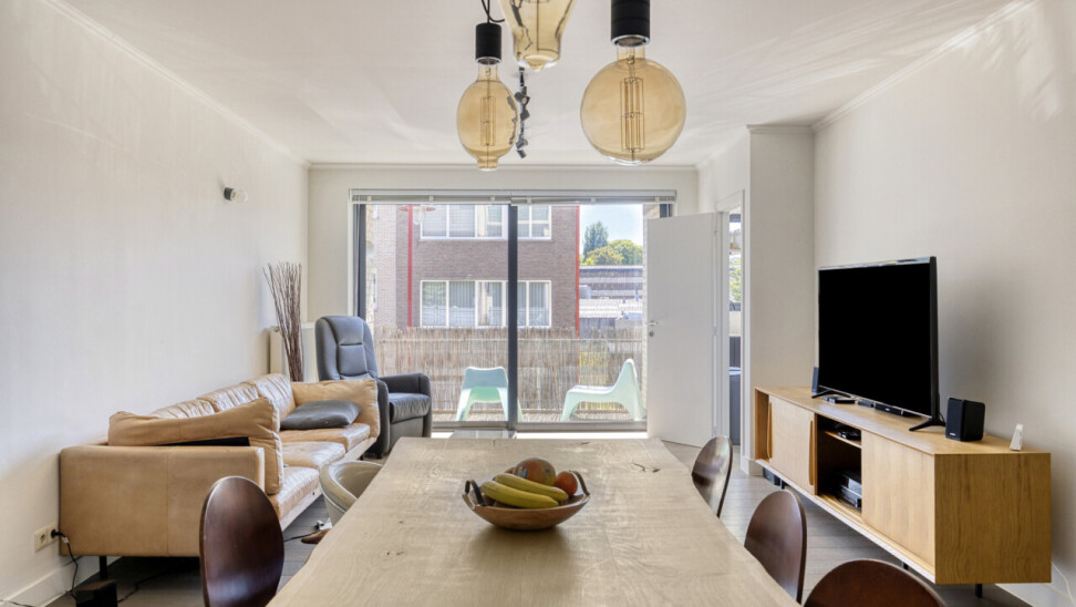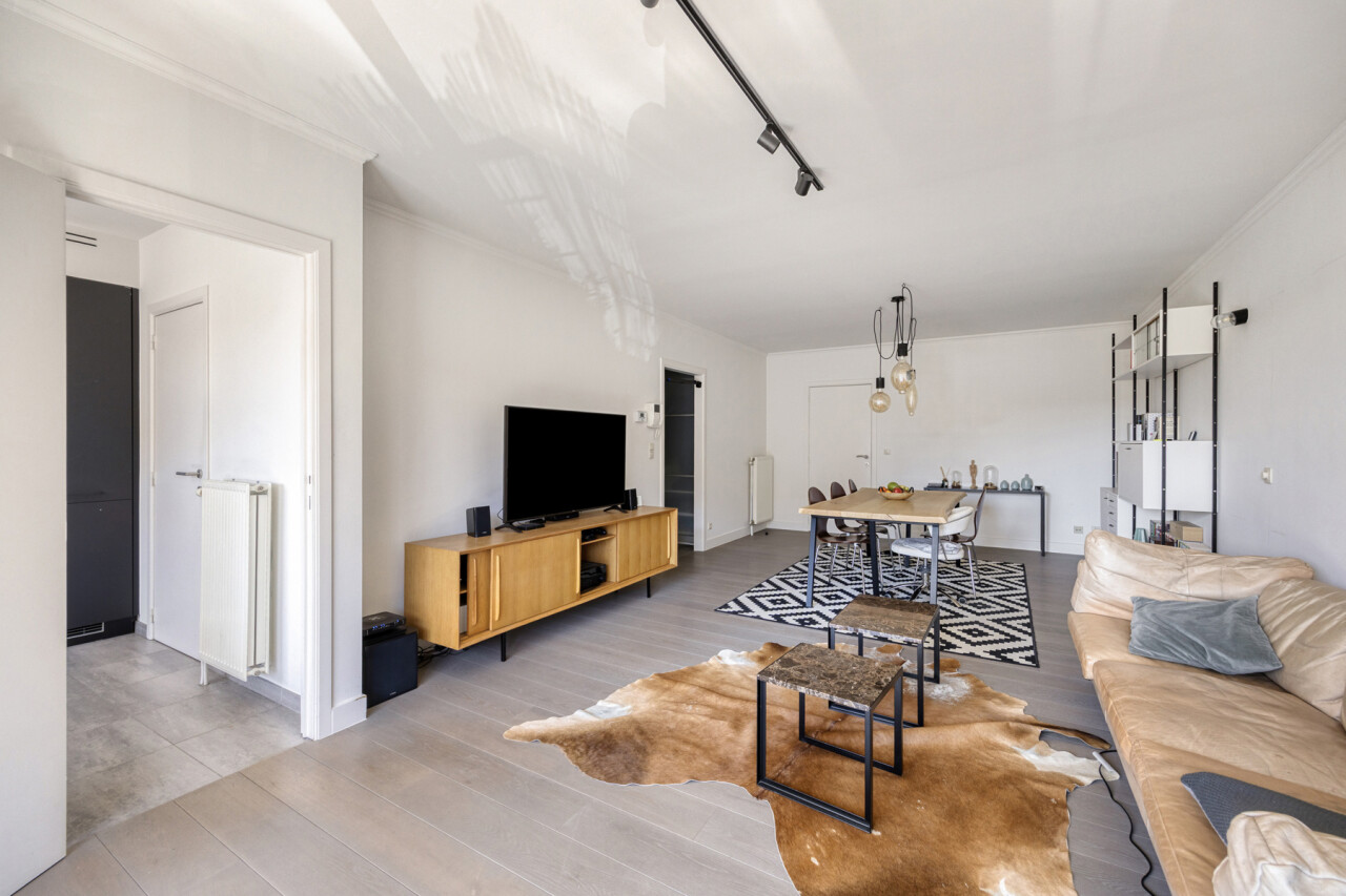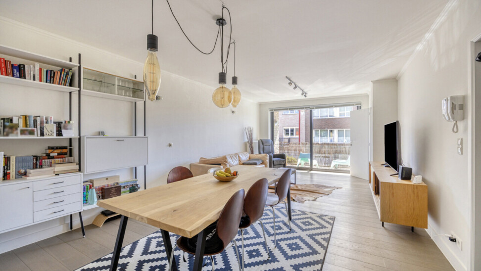 In residentie Amber (bj 2002) vindt u dit instapklaar appartement gelegen op de eerste verdieping met aangenaam terras. Het betreft een goed onderhouden residentie met lift. Het lichtrijk appartement werd grondig gerenoveerd en voorzien van nieuwe vloerbekleding, ingerichte keuken, toilet en badkamer. Indeling appartement: inkom met vestiaire, rechthoekige leefkamer met toegang tot keuken en naastgelegen berging, nachthal met toegang tot toilet, 2 ruime slaapkamers (16 – 13m²) en badkamer (dubbele wastafel, douche in bad). Aangenaam zuidgericht terras aan de voorkant van het appartement, aansluitend aan de leefkamer. Het appartement beschikt over een veiligheidsdeur, individuele tellers voor nutsvoorzieningen, rolluiken in de slaapkamers, een conforme elektrische keuring en een gunstige EPC-score. Bovendien heeft u tevens het genot van de gemeenschappelijke tuin. Gelegen in een rustige, vlot bereikbare straat met een goede verbinding naar openbaar vervoer, scholen en andere faciliteiten. Geschikt voor eigen bewoning of investering met mooi rendement. Stedenbouwkundige inlichtingen in aanvraag.