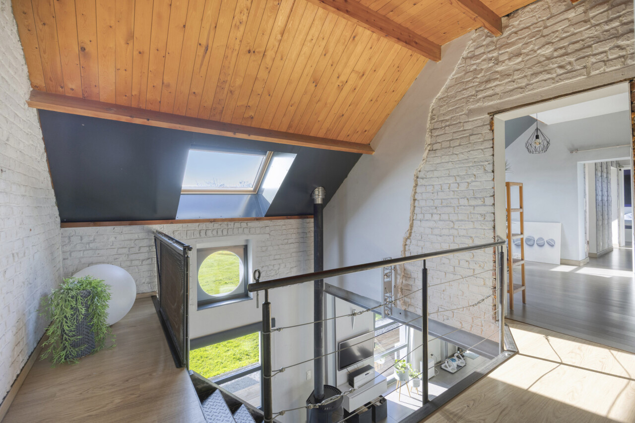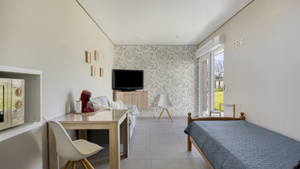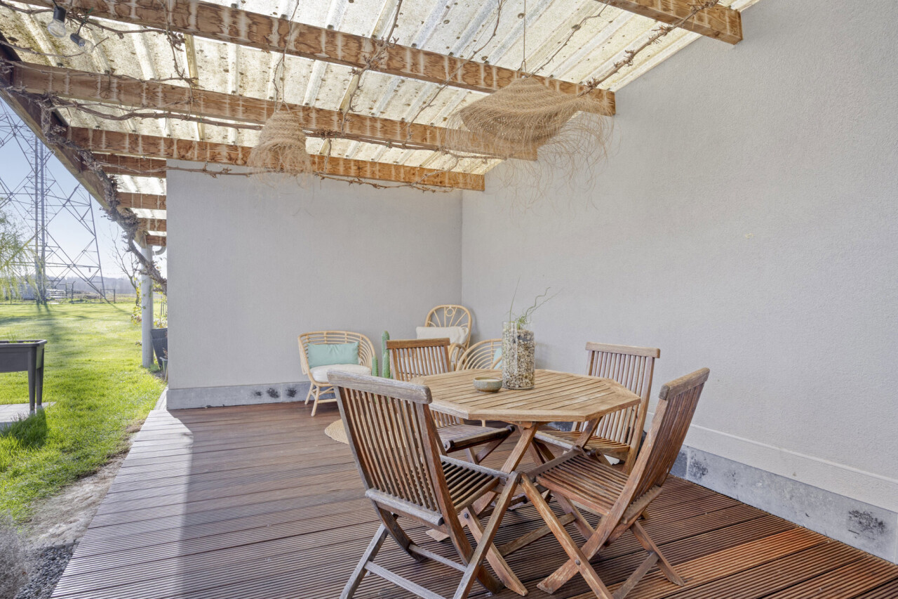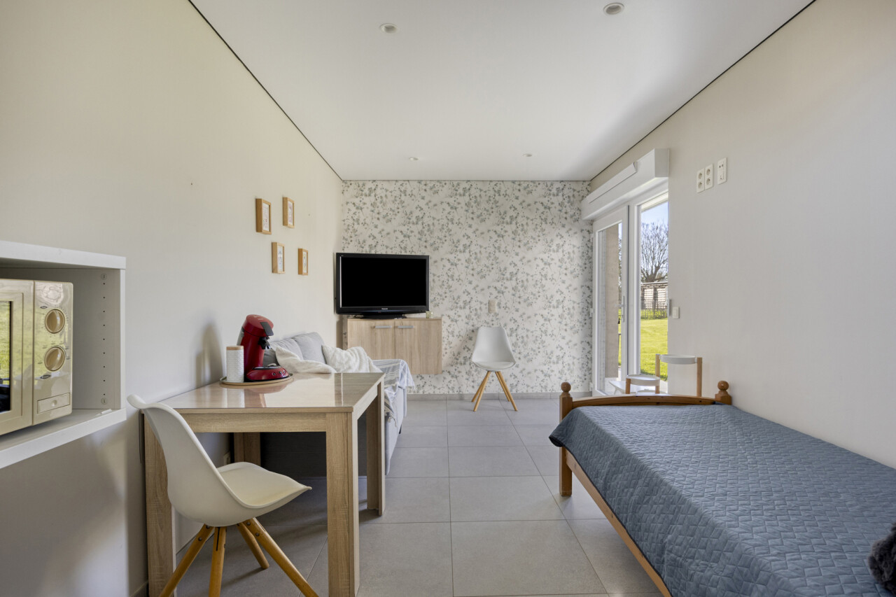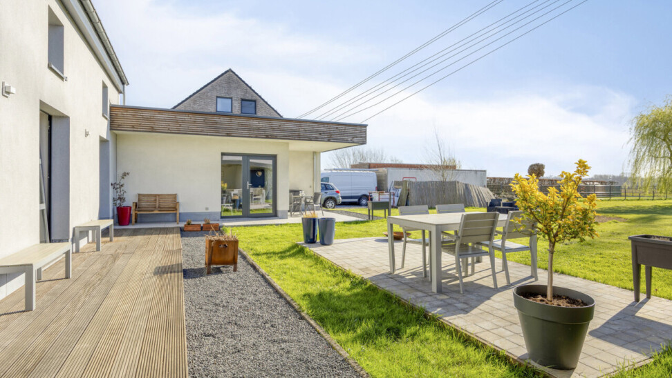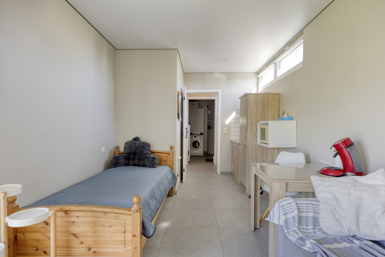 Borchtlombeek: zeer ruime, gezellige en instapklare woning met diverse mogelijkheden op een ruim zuidelijk georiënteerd perceel. Bezoek de virtuele toer via www.allur. Plannen eveneens in bijlage voor de specifieke indeling van de woning. De woning is grondig gerenoveerd en bestaat momenteel uit een ééngezinswoning met bijhorende zorgwoning. Indeling gelijkvloers: gezellige leefkamer met naastgelegen keuken, garage. Een doorgang vanuit de leefkamer leidt naar het toilet, een badkamer en een ruimte die momenteel functioneert als zorgwoning. De tuin is toegankelijk via het hoofdgebouw en vanuit de zorgwoning. De zorgwoning heeft een aparte toegang zodat deze eveneens kan gebruikt worden als uitoefening van een kleine zelfstandige activiteit. Toegang mogelijks via de naastgelegen oprit. Het nachtgedeelte omvat een nachthal met toegang tot badkamer. Aansluitend zijn er achter elkaar gelegen ruimtes die dienst doen als dressing, bureau en slaapkamers. Mits het plaatsen van wanden kan de bestemming van deze ruimtes nog herschikt worden. De woning heeft een zeer mooie onderhoudsvriendelijke tuin, aansluitend op agrarisch gebied. Er is een gezellig overdekt terras met bijhorende berging. Naast de woning heeft u een oprit voor meerdere wagens en een bijhorende garage. Zeer ruime woning met veel potentieel.